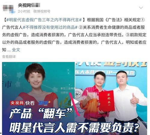 你知道吗?最近娱乐圈可是风波不断呢!不少明星因为代言虚假广告,被网友们纷纷吐槽。这可不是什么新鲜事儿,但每次看到这些消息,心里总是五味杂陈。今天,就让我带你一起揭开明星代言虚假广告的神秘面纱,看看这背后到底隐藏着怎样的故事。